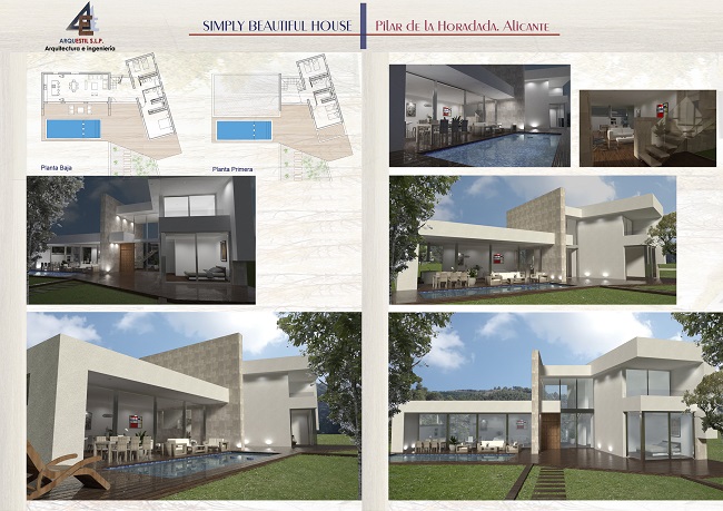 Proyecto Vivienda de diseño contemporáneo, situada en la costa de Alicante, compuesta por dos plantas en dos volúmenes bien definidos, esta volcada a la zona de terraza y piscina.